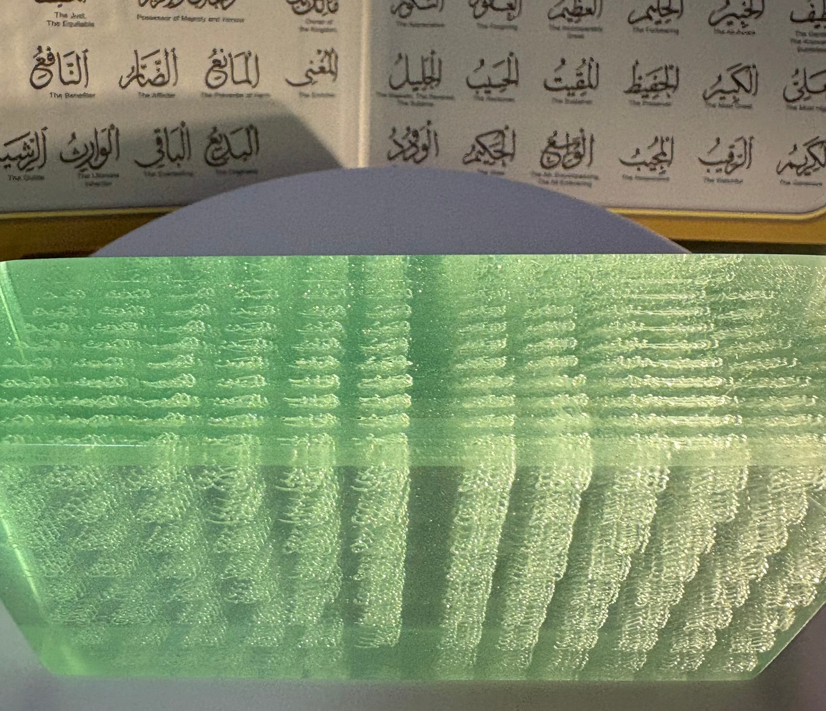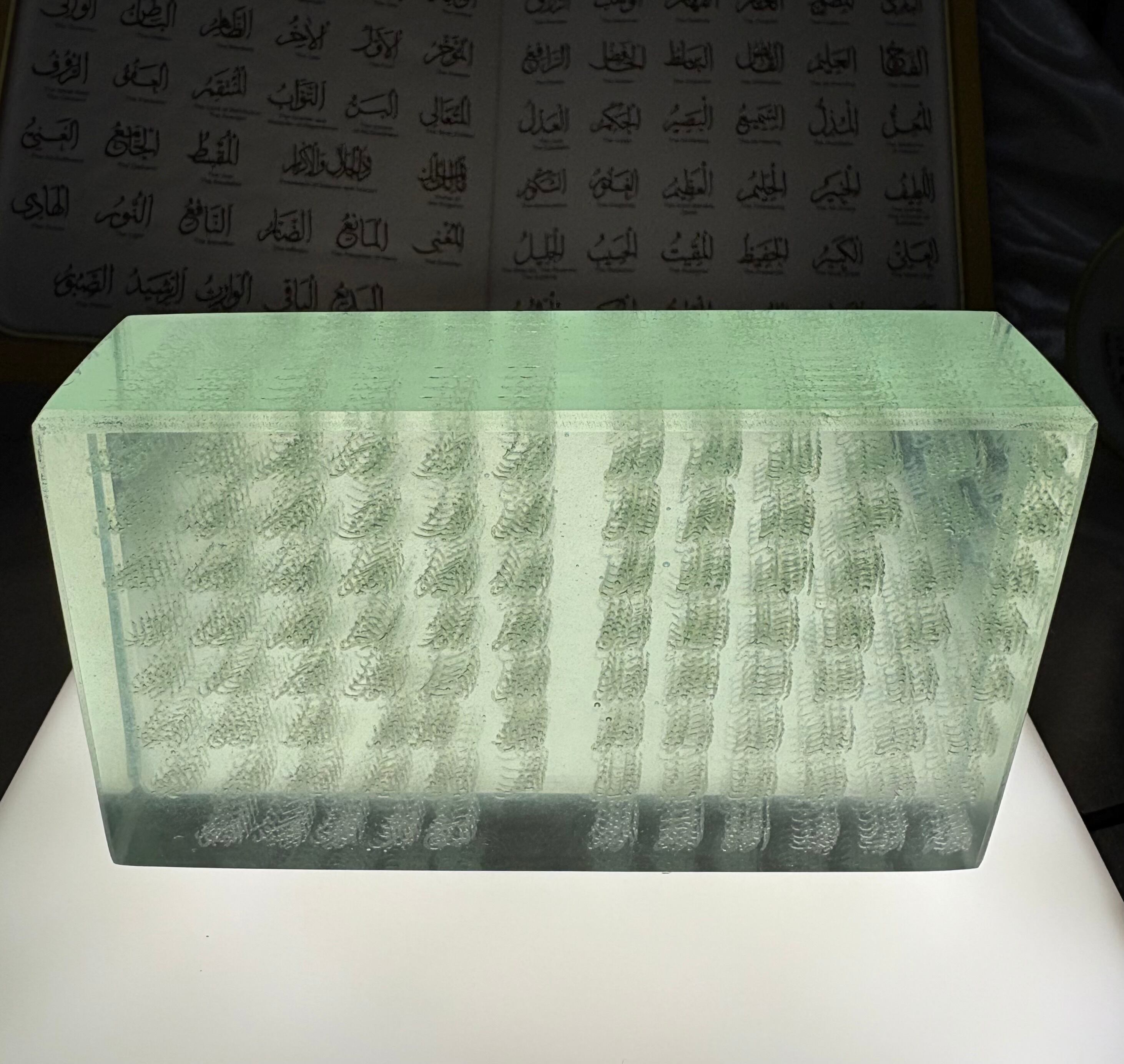Inside the glass, you can see the 99 beautiful names of Asma’ Allah al-Husna.