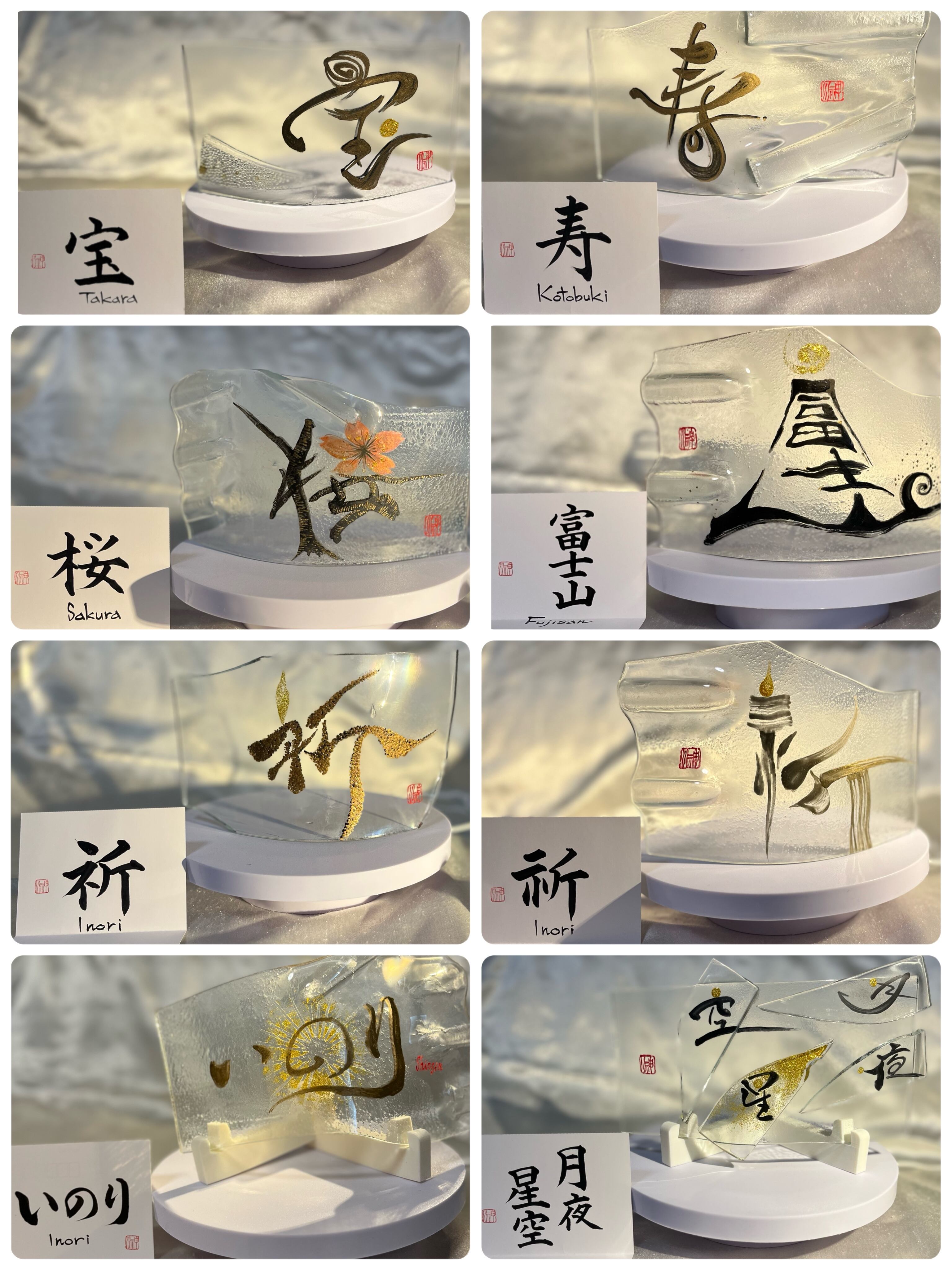 ・リサイクルガラスを使用しており、環境に配慮した素材です。手書き部分には、書家の技が光ります。